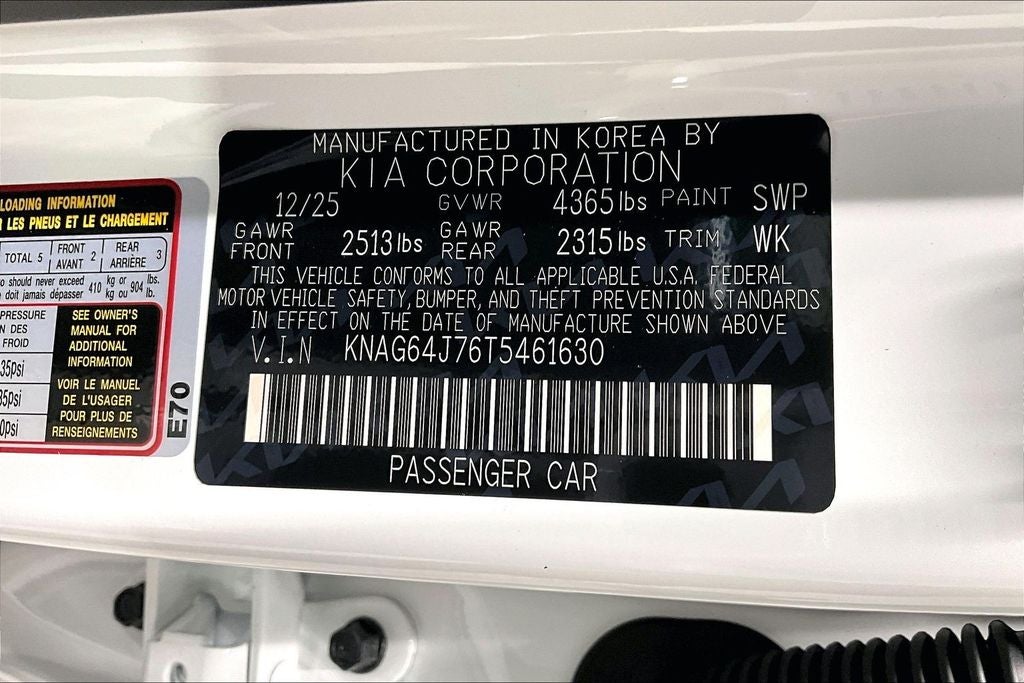 Recent Arrival! New Price! 2026 Kia K5 GT-Line 4D Sedan GT-Line Snow White Pearl 8-Speed Automatic I4 K5 GT-Line, 4D Sedan, I4, 8-Speed Automatic, Snow White Pearl, Black Leather, 6 Speakers, ABS brakes, Active Sound Design, Air Conditioning, Bose Premium Audio, Driver door bin, Driver vanity mirror, GT-Line Premium Package, GT-Line Red Interior Package, Heated Front Bucket Seats, Heated front seats, LED Interior Lighting, Navigation System, Panoramic Sunroof, Power driver seat, Power steering, Power windows, Radio data system, Rear window defroster, Remote keyless entry, Steering wheel mounted audio controls, SynTex Seat Trim, Wheels: 18 x 7.5J Gloss Black Machined Finish Alloy, Wheels: 18 x 7.5J Unique Gloss Black Alloy. Price includes: $1000 - KFA Dealer Choice Program: $1000 discount and 5.25% APR for 36 months. $30.08 per $1000 financed. Available to well qualified buyers who finance through Kia Finance America. 506. Exp. 03/02/2026