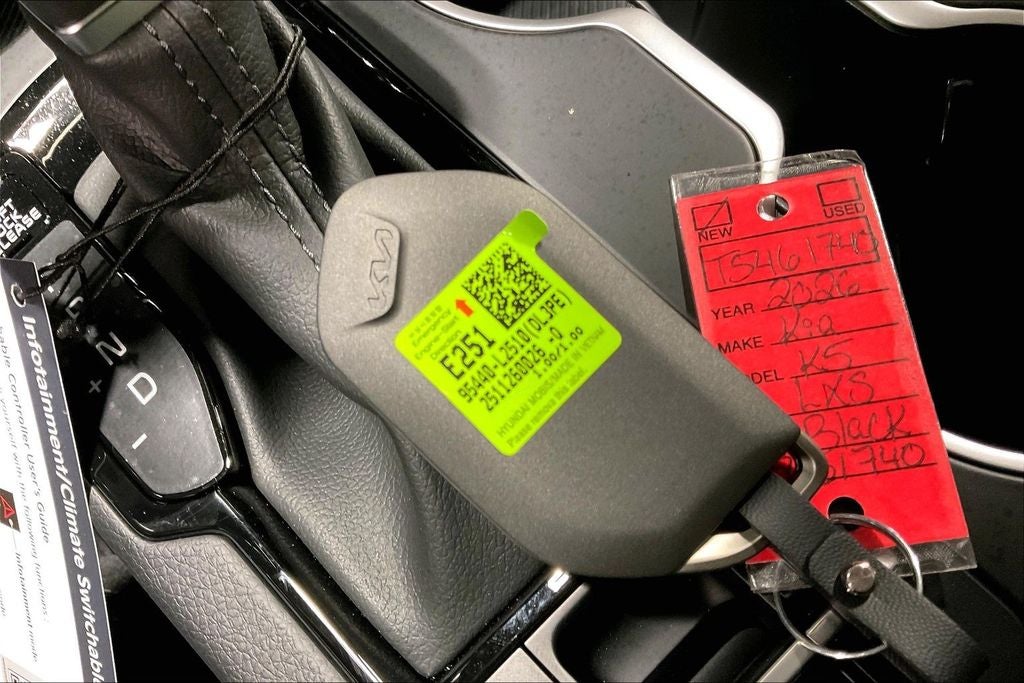 Recent Arrival! 2026 Kia K5 LXS 4D Sedan LXS Aurora Black Pearl FWD 8-Speed Automatic I4 Apple CarPlay / Android Auto, K5 LXS, 4D Sedan, I4, 8-Speed Automatic, FWD, Aurora Black Pearl, Black Cloth, 4-Wheel Disc Brakes, 6 Speakers, ABS brakes, Air Conditioning, Alloy wheels, AM/FM radio: SiriusXM, Auto High-beam Headlights, Automatic temperature control, Brake assist, Bumpers: body-color, Cloth Seat Trim, Delay-off headlights, Driver door bin, Driver vanity mirror, Dual front impact airbags, Dual front side impact airbags, Electronic Stability Control, Emergency communication system: Kia Connect (includes 1 year free trial), Four wheel independent suspension, Front anti-roll bar, Front Bucket Seats, Front Center Armrest, Front dual zone A/C, Front reading lights, Fully automatic headlights, Heated door mirrors, Illuminated entry, Knee airbag, Low tire pressure warning, Occupant sensing airbag, Outside temperature display, Overhead airbag, Overhead console, Panic alarm, Passenger door bin, Passenger vanity mirror, Power door mirrors, Power steering, Power windows, Radio data system, Radio: AM/FM Audio System, Rear anti-roll bar, Rear seat center armrest, Rear side impact airbag, Rear window defroster, Remote keyless entry, Security system, Speed control, Speed-sensing steering, Split folding rear seat, Steering wheel mounted audio controls, Tachometer, Telescoping steering wheel, Tilt steering wheel, Traction control, Trip computer, Variably intermittent wipers, Wheel Locks, Wheels: 16 x 6.5J Gloss Black Alloy.
