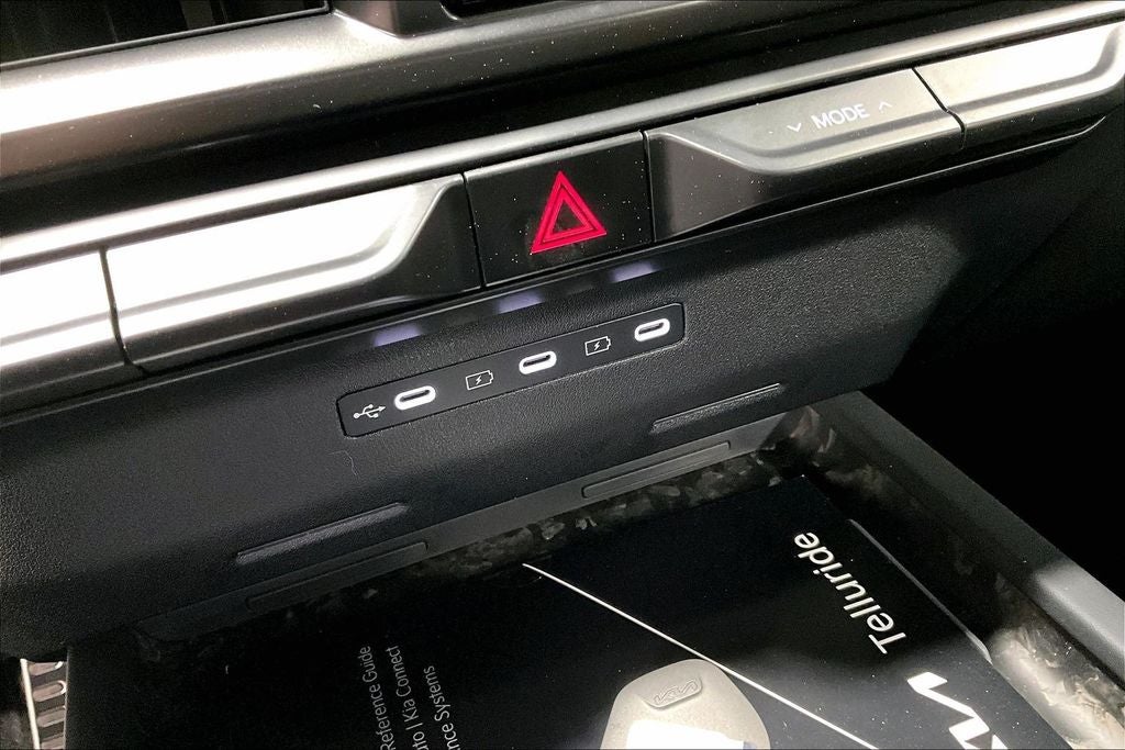 - Radio: AM/FM Audio System -inc: 12.3" center infotainment w/navigation, wireless Apple CarPlay and Android Auto, SiriusXM, Bluetooth® w/voice recognition, 14 speakers Meridian audio system, 10" subwoofer, passenger talk, Wi-Fi hotspot, Kia Connect, Over-the-Air update capability and 1 data USB-C port in front row