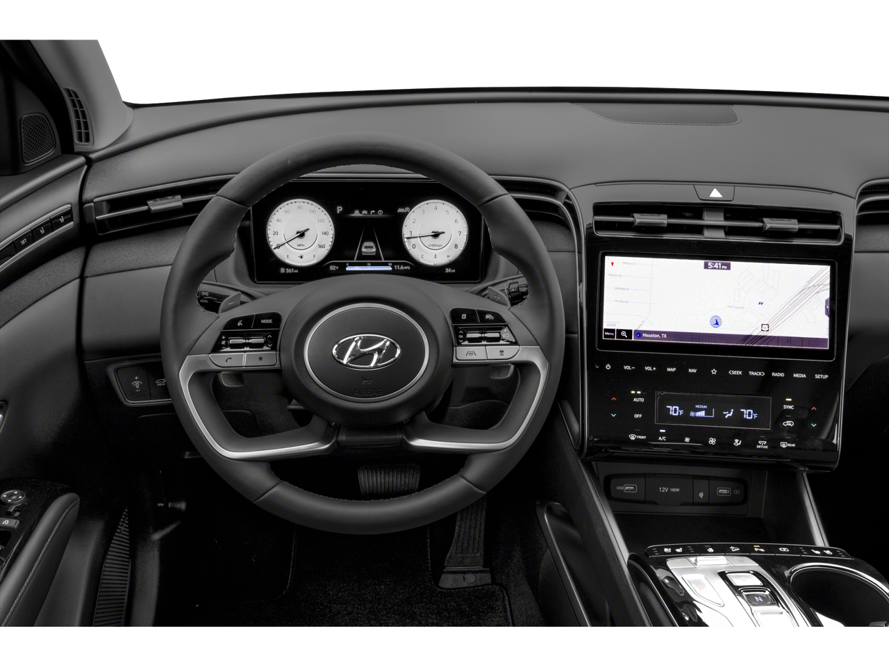 - Radio: Bose Premium w/AM/FM/HD/SiriusXM Audio System -inc: 10.25" color touchscreen w/onboard navigation and traffic flow including incident data via HD radio (HERE) (AVN 5.0), 8 speakers (1 twiddler on center of instrument panel, 2 tweeters, 2 front door, 2 rear door, 1 woofer on rear quarter panel), digital 8 channel amp w/custom equalization, digital signal processing and dynamic speed compensation, Blue Link connected car, Android Auto and Apple CarPlay, USB outlets and Bluetooth® w/voice recognition