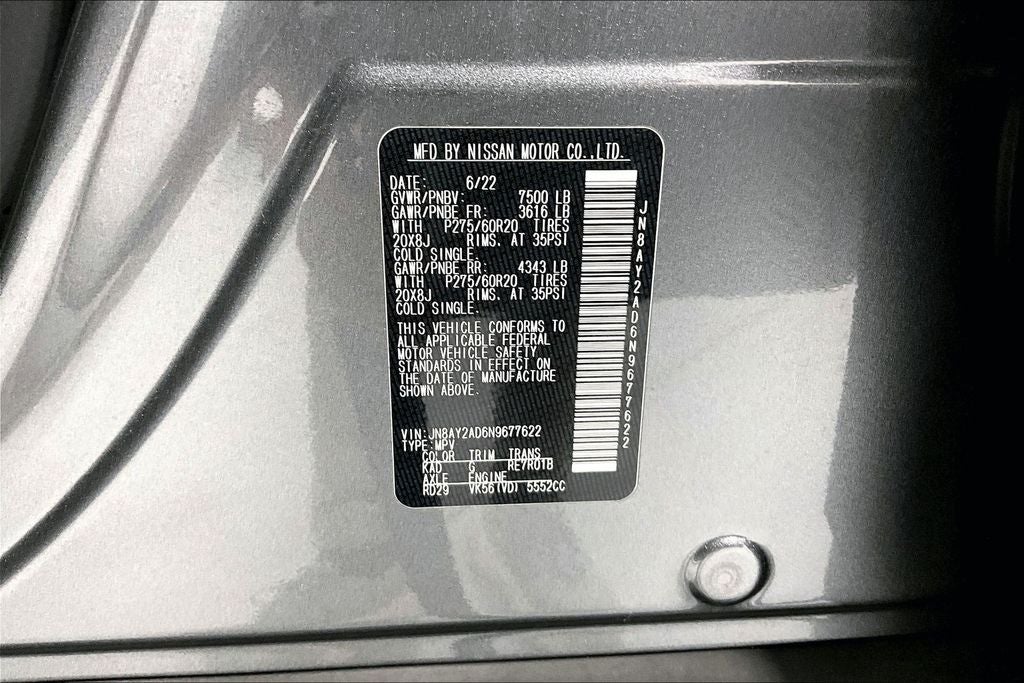 Clean CARFAX. Recent Arrival! Priced below KBB Fair Purchase Price! 2022 Nissan Armada SV 5.6L V8 DOHC 32V LEV3-ULEV125 400hp 4WD 7-Speed Automatic 4WD.