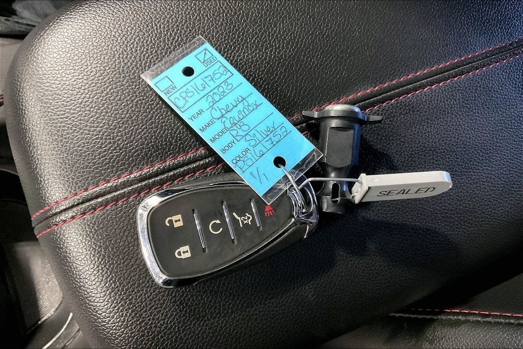 New Price! 2023 Chevrolet Equinox RS RS Sterling Gray Metallic 4D Sport Utility AWD 1.5L DOHC 6-Speed Automatic Electronic with Overdrive 1 Owner, New Feature, Apple CarPlay / Android Auto, Backup camera, Blind Spot Monitoring, Bluetooth®, Heated seats, Leather seats, Remote Start, Equinox RS, 4D Sport Utility, 1.5L DOHC, 6-Speed Automatic Electronic with Overdrive, AWD, Sterling Gray Metallic, Jet Black Cloth, 19 Aluminum Wheels, 2 Rear USB Charging-Only Ports, 2 USB Ports & Auxiliary Input Jack, 2-Way Power Driver Lumbar Control Seat Adjuster, 3.87 Final Drive Axle Ratio, 4-Wheel Disc Brakes, 6 Speakers, 6-Speaker Audio System Feature, ABS brakes, Air Conditioning, Alloy wheels, AM/FM radio: SiriusXM, Auto High-beam Headlights, Automatic temperature control, Bluetooth® For Phone, Brake assist, Bumpers: body-color, Cold Air Grille Shutter, Compass, Delay-off headlights, Driver 8-Way Power Seat Adjuster, Driver door bin, Driver vanity mirror, Dual front impact airbags, Dual front side impact airbags, Electronic Stability Control, Emergency communication system: OnStar and Chevrolet connected services capable, Four wheel independent suspension, Front anti-roll bar, Front Bucket Seats, Front Center Armrest, Front dual zone A/C, Front Passenger 4-Way Manual Seat Adjuster, Front reading lights, Fully automatic headlights, Heated door mirrors, Heated Driver & Front Passenger Seats, Heated front seats, Illuminated entry, Lane Change Alert w/Side Blind Zone Alert, Low tire pressure warning, Occupant sensing airbag, Outside temperature display, Overhead airbag, Overhead console, Panic alarm, Passenger door bin, Passenger vanity mirror, Power door mirrors, Power driver seat, Power Liftgate, Power steering, Power windows, Preferred Equipment Group 1RS, Premium audio system: Chevrolet Infotainment 3, Premium Cloth Seat Trim, Radio data system, Radio: Chevrolet Infotainment 3 System w/AM/FM, Rear anti-roll bar, Rear Cross Traffic Alert, Rear reading lights, Rear seat center armrest, Rear window defroster, Rear window wiper, Remote keyless entry, Roof rack: rails only, Security system, Side Blind Zone & Rear Cross Traffic, SiriusXM Radio, Speed control, Speed-sensing steering, Split folding rear seat, Spoiler, Steering wheel mounted audio controls, Tachometer, Telescoping steering wheel, Tilt steering wheel, Traction control, Trip computer, Variably intermittent wipers, Wireless Apple CarPlay/Wireless Android Auto.