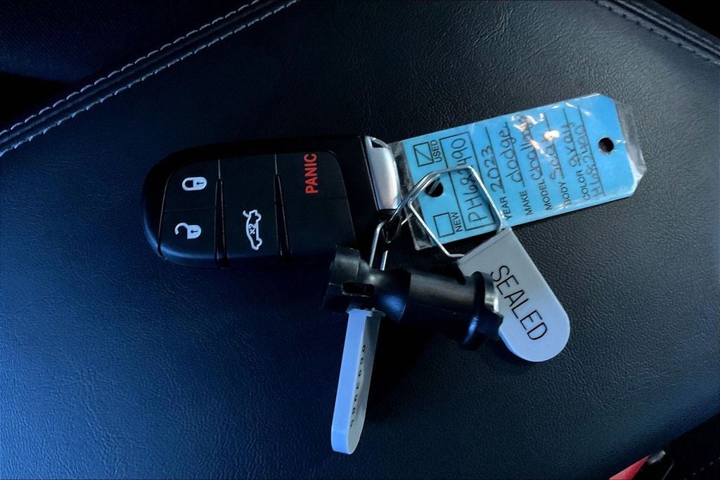 2023 Dodge Challenger R/T Scat Pack R/T Scat Pack Destroyer Gray Clearcoat 2D Coupe RWD SRT HEMI 6.4L V8 Tremec 6-Speed Manual 1 Owner, New Feature, Challenger R/T Scat Pack, 2D Coupe, SRT HEMI 6.4L V8, Tremec 6-Speed Manual, RWD, Destroyer Gray Clearcoat, Black Cloth, 1-Yr SiriusXM Guardian Trial, 4-Wheel Disc Brakes, 4G LTE Wi-Fi Hot Spot, 506 Watt Amplifier, 6 Speakers, 8.4 Touchscreen Display, 9 Amplified Speakers w/Subwoofer, ABS brakes, Air Conditioning, Alloy wheels, Alpine Audio Group w/Subwoofer, AM/FM radio: SiriusXM, Anti-whiplash front head restraints, Apple CarPlay, Apple CarPlay/Android Auto, Auto-dimming Rear-View mirror, Automatic temperature control, Body Color Exterior Mirrors, Brake assist, Bumpers: body-color, Compass, Compass Gauge, Delay-off headlights, Driver door bin, Driver vanity mirror, Dual front impact airbags, Dual front side impact airbags, Electronic Stability Control, Emergency communication system: SiriusXM Guardian, Exterior Mirrors w/Heating Element, For Details, Visit DriveUconnect.com, For More Info, Call 800-643-2112, Four wheel independent suspension, Front anti-roll bar, Front Bucket Seats, Front Center Armrest, Front dual zone A/C, Front fog lights, Front reading lights, Fully automatic headlights, Garage door transmitter, Google Android Auto, GPS Antenna Input, HD Radio, Heated door mirrors, Houndstooth Cloth Performance Seats, Illuminated entry, Integrated Center Stack Radio, Integrated Voice Command w/Bluetooth®, Leather Shift Knob, Low tire pressure warning, Media Hub (2 USB, AUX), Outside temperature display, Overhead airbag, Overhead console, Panic alarm, ParkView Rear Back-Up Camera, Passenger door bin, Passenger vanity mirror, Power door mirrors, Power driver seat, Power steering, Power Sunroof, Power windows, Quick Order Package 23G R/T Scat Pack, Radio data system, Radio: Uconnect 4C w/8.4 Display, Rear anti-roll bar, Rear reading lights, Rear seat center armrest, Rear window defroster, Remote keyless entry, Rhombi 2-Pc Wheel Center Cap, Security system, Shark Fin Antenna, SiriusXM Radio Service, SiriusXM Satellite Radio, Speed control, Speed-sensing steering, Split folding rear seat, Spoiler, Sport steering wheel, Steering wheel mounted audio controls, Surround Sound, Tachometer, Telescoping steering wheel, Tilt steering wheel, Traction control, Trip computer, USB Host Flip, Variably intermittent wipers, Wheels: 20 x 9.0 Lo Gloss Granite Crystal.