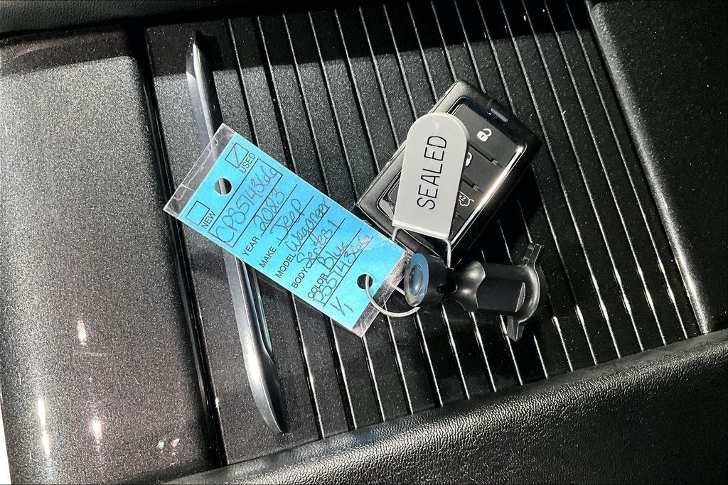 New Price! 2023 Jeep Wagoneer Base River Rock 4D Sport Utility 4WD 5.7L V8 8-Speed Automatic 1 Owner, New Feature, Apple CarPlay / Android Auto, Backup camera, Blind Spot Monitoring, Bluetooth®, Heated seats, Leather seats, Remote Start, 4D Sport Utility, 5.7L V8, 8-Speed Automatic, 4WD, River Rock, Black Leather, 10 Speakers, 2nd Row Manual Window Shades, 3.21 Rear Axle Ratio, 3rd row seats: bench, 4-Wheel Disc Brakes, ABS brakes, Active Lane Management System, Adaptive Cruise Control w/Stop & Go, Adjustable pedals, Air Conditioning, Alloy wheels, AM/FM radio: SiriusXM with 360L, Anti-whiplash front head restraints, Audio memory, Auto High Beam Headlamp Control, Auto-dimming door mirrors, Auto-dimming Rear-View mirror, Auto-leveling suspension, Automatic temperature control, Brake assist, Bumpers: body-color, Compass, Convenience Group I, Delay-off headlights, Driver door bin, Driver vanity mirror, Driver's Seat Mounted Armrest, Dual front impact airbags, Dual front side impact airbags, Electronic Stability Control, Emergency communication system: Automatic SOS Call, Exterior Parking Camera Rear, Four wheel independent suspension, Front anti-roll bar, Front Bucket Seats, Front Center Armrest w/Storage, Front dual zone A/C, Front fog lights, Front reading lights, Fully automatic headlights, Garage door transmitter, Heated door mirrors, Heated front seats, Heated Second Row Seats, Heated steering wheel, Illuminated entry, Knee airbag, Leather Trimmed Bucket Seats, Low tire pressure warning, Memory seat, Navigation System, Normal Duty Suspension, Occupant sensing airbag, Outside temperature display, Overhead airbag, Overhead console, P&P Park & Unpark Assist w/Stop System, Panic alarm, Passenger door bin, Passenger seat mounted armrest, Passenger vanity mirror, Pedal memory, Power adjustable front head restraints, Power door mirrors, Power driver seat, Power Liftgate, Power passenger seat, Power steering, Power windows, Quick Order Package 22E (DISC), Radio data system, Radio: Uconnect 5 Nav w/10.1 Display, Rain Sensitive Windshield Wipers, Rear air conditioning, Rear anti-roll bar, Rear dual zone A/C, Rear reading lights, Rear seat center armrest, Rear window defroster, Rear window wiper, Reclining 3rd row seat, Remote keyless entry, Security system, Side Distance Warning, Speed control, Speed-sensing steering, Speed-Sensitive Wipers, Split folding rear seat, Steering wheel memory, Steering wheel mounted audio controls, Surround View Camera System, Tachometer, Telescoping steering wheel, Tilt steering wheel, Traction control, Trip computer, Turn signal indicator mirrors, Variably intermittent wipers, Ventilated front seats, Voltmeter, Wheels: 18 x 8.0 Aluminum Base Finish, Wireless Charging Pad.