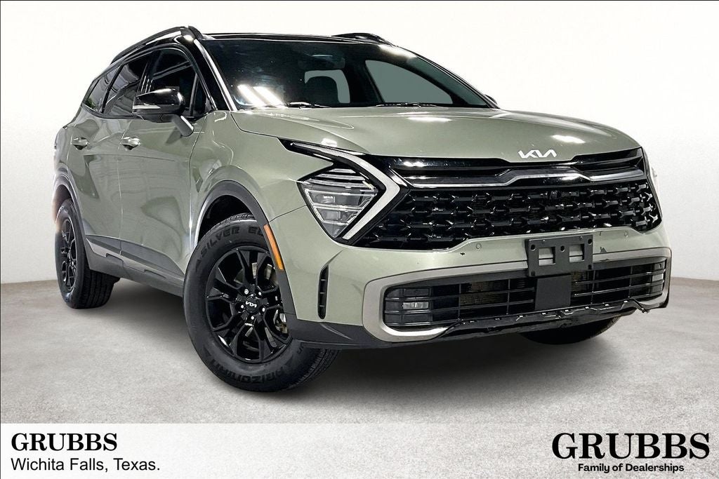 2023 Kia Sportage X-Pro Prestige X-Pro Prestige Jungle Green/Ebony Black Roof 4D Sport Utility AWD I4 8-Speed Automatic 1 Owner, New Feature, Apple CarPlay / Android Auto, Backup camera, Blind Spot Monitoring, Bluetooth®, Heated seats, Leather seats, Navigation system, Remote Start, Sunroof / Moonroof, Sportage X-Pro Prestige, 4D Sport Utility, I4, 8-Speed Automatic, AWD, Jungle Green/Ebony Black Roof, Black Artificial Leather, 4-Wheel Disc Brakes, 8 Speakers, ABS brakes, Air Conditioning, Alloy wheels, AM/FM radio: SiriusXM, Apple CarPlay & Android Auto, Auto High-beam Headlights, Auto-dimming Rear-View mirror, Automatic temperature control, Axle Ratio: 3.648, Brake assist, Bumpers: body-color, Carpeted Floor Mats, Compass, Delay-off headlights, Driver door bin, Driver vanity mirror, Dual front impact airbags, Dual front side impact airbags, Ebony Black Roof, Electronic Stability Control, Emergency communication system, Four wheel independent suspension, Front anti-roll bar, Front Bucket Seats, Front Center Armrest, Front dual zone A/C, Front fog lights, Front reading lights, Fully automatic headlights, Garage door transmitter: HomeLink, harman/kardon® Speakers, Heated & Ventilated Front Bucket Seats, Heated door mirrors, Heated front seats, Heated steering wheel, Illuminated entry, Leather Shift Knob, Leather steering wheel, Low tire pressure warning, Memory seat, Navigation System, Occupant sensing airbag, Outside temperature display, Overhead airbag, Overhead console, Panic alarm, Passenger door bin, Passenger vanity mirror, Power door mirrors, Power driver seat, Power Liftgate, Power moonroof, Power passenger seat, Power steering, Power windows, Premium Leatherette Seat Trim, Radio: AM/FM/HD Audio System, Rain sensing wipers, Rear anti-roll bar, Rear reading lights, Rear seat center armrest, Rear window defroster, Rear window wiper, Remote keyless entry, Sage Green Interior Color Package, Security system, Speed control, Speed-sensing steering, Split folding rear seat, Spoiler, Steering wheel mounted audio controls, Tachometer, Telescoping steering wheel, Tilt steering wheel, Traction control, Trip computer, Turn signal indicator mirrors, Variably intermittent wipers, Ventilated front seats, Wheels: 17 Matte Black Alloy, X-Pro Two-Tone Roof Package.