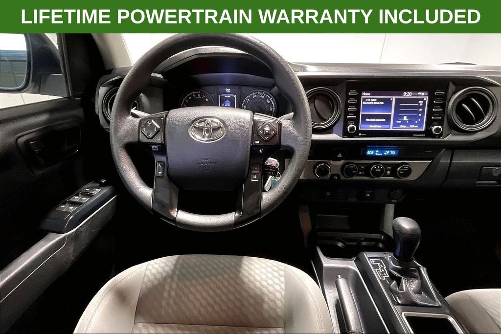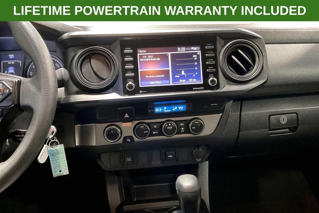 2023 Toyota Tacoma SR V6 SR Ice V6 4D Double Cab 4WD 3.5L V6 PDI DOHC 24V LEV3-ULEV70 278hp 6-Speed Automatic 1 Owner, New Feature, Apple CarPlay / Android Auto, Backup camera, Bluetooth®, Tacoma SR V6, 4D Double Cab, 3.5L V6 PDI DOHC 24V LEV3-ULEV70 278hp, 6-Speed Automatic, 4WD, Ice, Cement Cloth, 16 Styled Steel Wheels, 6 Speakers, ABS brakes, Air Conditioning, AM/FM radio: SiriusXM, Anti-whiplash front head restraints, Apple CarPlay/Android Auto, Auto High-beam Headlights, Automatic temperature control, Axle Ratio: 3.91, Brake assist, Bumpers: body-color, Driver door bin, Dual front impact airbags, Dual front side impact airbags, Electronic Stability Control, Emergency communication system: Safety Connect (1-year trial), Exterior Parking Camera Rear, Fabric Seat Trim, Front anti-roll bar, Front Bucket Seats, Front Center Armrest, Front dual zone A/C, Front reading lights, Front Seats, Front wheel independent suspension, Heated door mirrors, Illuminated entry, Knee airbag, Low tire pressure warning, Occupant sensing airbag, Outside temperature display, Overhead airbag, Overhead console, Passenger door bin, Power door mirrors, Power steering, Power windows, Radio: Audio, Rear step bumper, Speed control, Speed-sensing steering, Split folding rear seat, Steering wheel mounted audio controls, Tachometer, Telescoping steering wheel, Tilt steering wheel, Traction control, Variably intermittent wipers.
