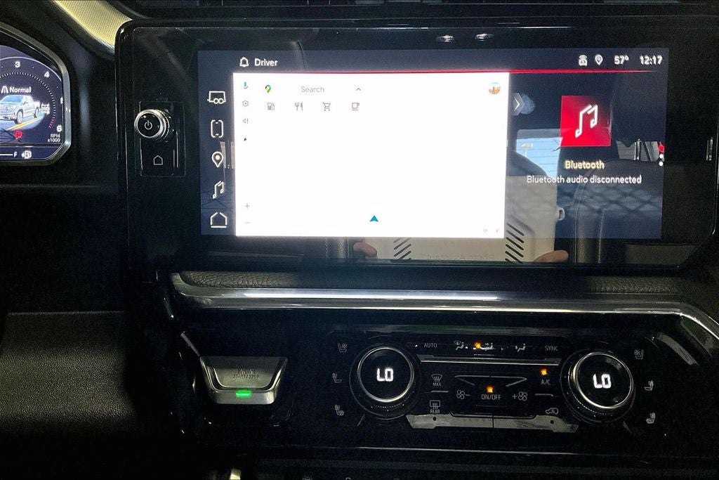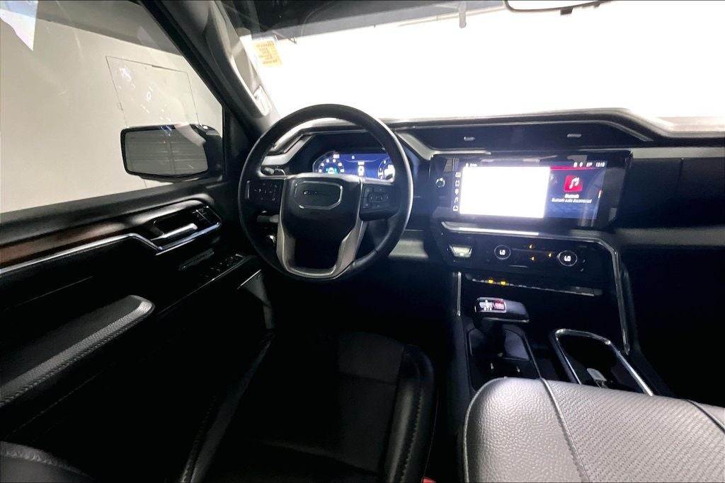 2024 GMC Sierra 1500 Denali Denali Titanium Rush Metallic 4D Crew Cab 4WD EcoTec3 5.3L V8 10-Speed Automatic 1 Owner, New Feature, Sierra 1500 Denali, 4D Crew Cab, EcoTec3 5.3L V8, 10-Speed Automatic, 4WD, Titanium Rush Metallic, Jet Black Leather, 12-Way Power Driver Seat Adjuster w/Lumbar, 12-Way Power Passenger Seat Adjuster w/Lumbar, 120-Volt Bed Mounted Power Outlet, 120-Volt Interior Power Outlet, 170 Amp Alternator, 2 Charge/Data USB Ports Inside Center Console, 2 Type-C Charge-Only Rear USB Ports, 2 USB Ports, 3.23 Rear Axle Ratio, 4-Wheel Disc Brakes, 7 Speakers, ABS brakes, Adaptive suspension, Advantage Tri-Fold Soft Tonneau Cover (LPO), Air Conditioning, Alloy wheels, AM/FM radio: SiriusXM with 360L, Apple CarPlay/Android Auto, Auto High-beam Headlights, Auto-dimming door mirrors, Auto-dimming Rear-View mirror, Auto-Locking Rear Differential, Automatic temperature control, Auxiliary External Transmission Oil Cooler, Bed View Camera, Brake assist, Buckle to Drive, Bumpers: body-color, Chrome Header w/Signature Denali Chrome Grille, Chrome Recovery Hooks, Chrome Wheel To Wheel Assist Steps, Color-Keyed Carpeting Floor Covering, Compass, Deep-Tinted Glass, Delay-off headlights, Denali Premium Suspension w/Adaptive Ride Control, Denali Reserve Package, Driver door bin, Driver Memory, Driver vanity mirror, Dual front impact airbags, Dual front side impact airbags, Electric Rear-Window Defogger, Electronic Stability Control, Emergency communication system: OnStar and GMC connected services capable, Enhanced Automatic Emergency Braking, Floor-Mounted Center Console, Following Distance Indicator, Forge Perforated Leather Seat Trim, Forward Collision Alert, Front anti-roll bar, Front Bucket Seats, Front Center Armrest, Front dual zone A/C, Front fog lights, Front License Plate Kit, Front Pedestrian Braking, Front Rain-Sensing Wipers, Front reading lights, Front wheel independent suspension, Fully automatic headlights, Garage door transmitter, Genuine wood console insert, Genuine wood dashboard insert, Genuine wood door panel insert, GMC Connected Access Capable, GMC MultiPro Power Steps, HD Surround Vision, Heated 2nd Row Outboard Seats, Heated door mirrors, Heated Driver & Front Outboard Passenger Seating, Heated front seats, Heated rear seats, Heated steering wheel, Heavy-Duty Air Filter, Hill Descent Control, Hitch Guidance, Hitch View, Illuminated entry, In-Vehicle Trailering System App, Integrated Trailer Brake Controller, IntelliBeam Automatic High Beam On/Off, Keyless Open & Start, Lane Keep Assist w/Lane Departure Warning, LED Cargo Area Lighting, Low tire pressure warning, Memory seat, Multicolor 15 Diagonal Head-Up Display, Navigation System, Not Equipped w/Steering Column Lock, Occupant sensing airbag, OnStar & GMC Connected Services Capable, Outside temperature display, Overhead airbag, Overhead console, Panic alarm, Passenger door bin, Passenger vanity mirror, Perimeter Lighting, Power Door Locks, Power door mirrors, Power driver seat, Power Front Passenger Windows w/Express Up/Down, Power Front Windows w/Driver Express Up/Down, Power passenger seat, Power Rake & Telescoping Steering Column, Power Rear Windows w/Express Down, Power Sliding Rear Window w/Rear Defogger, Power steering, Power Sunroof, Power windows, Preferred Equipment Group 5SA, Premium audio system: GMC Infotainment System, Premium Bose 7-Speaker Sound System, Push Button Start, Radio data system, Radio: Premium GMC Infotainment Audio System, Rain sensing wipers, Rear Camera Mirror, Rear Cross Traffic Braking, Rear Pedestrian Detection, Rear reading lights, Rear seat center armrest, Rear step bumper, Rear Wheelhouse Liners, Rear window defroster, Remote keyless entry, Remote Vehicle Starter System, Safety Alert Seat, Security system, SiriusXM w/360L, Speed control, Speed-sensing steering, Split folding rear seat, Spray-On Pickup Bedliner w/Denali Logo, Steering Wheel Audio Controls, Steering wheel mounted audio controls, Tachometer, Technology