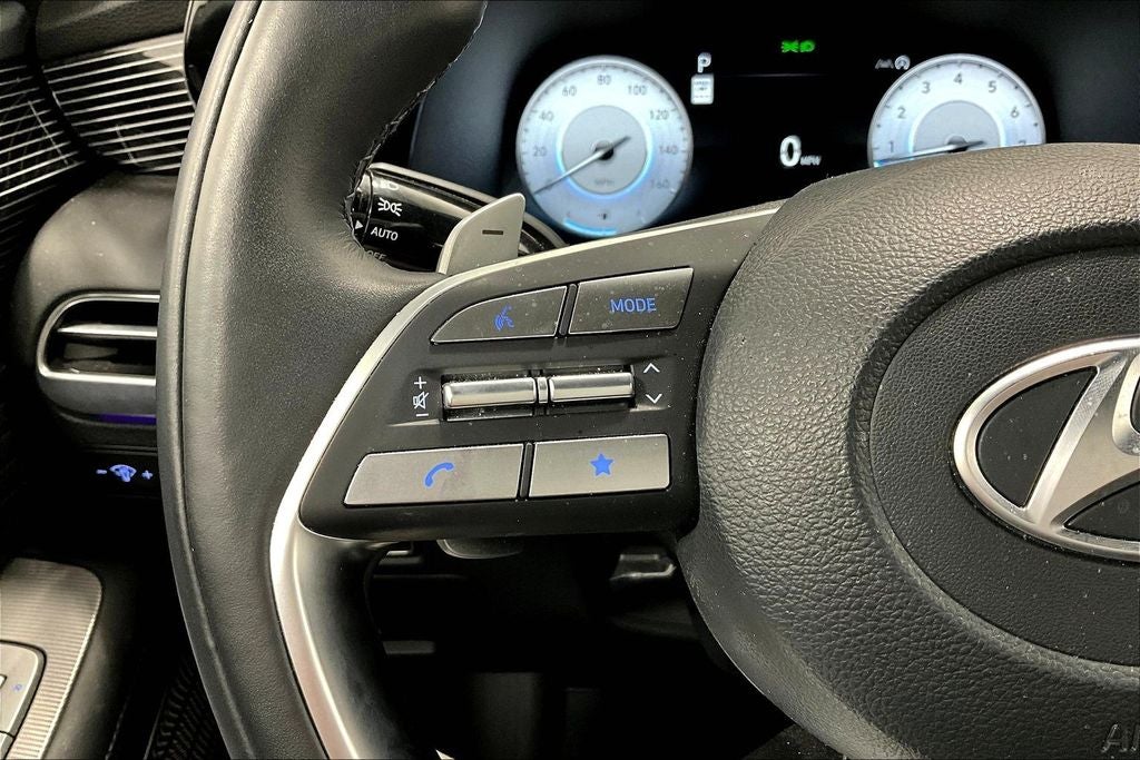 - Radio: AM/FM/MP3 Premium Audio System -inc: 630-Watts, Harman Kardon audio system w/12-speakers, Quantum Logic Surround, Clari-Fi, 12.3" color touchscreen display, onboard navigation w/traffic flow including incident data via HD Radio (HERE), Over-the-Air (OTA) map updates, SiriusXM, Android Auto and Apple CarPlay, USB, dynamic voice recognition, rear seat quiet mode, passenger talk (in-car intercom), Bluetooth® hands-free connectivity w/multiple device connection and Bluelink Connected Car System