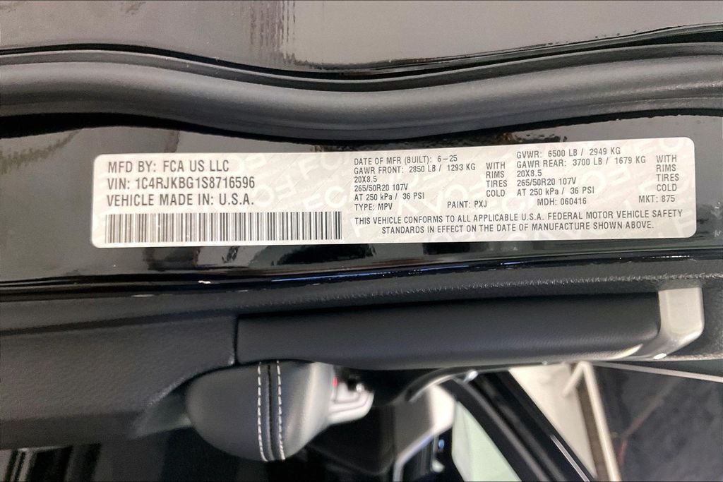 New Price! 2025 Jeep Grand Cherokee L Limited Limited Diamond Black Crystal Pearlcoat 4D Sport Utility 4WD 3.6L V6 24V VVT 8-Speed Automatic 1 Owner, New Feature, Apple CarPlay / Android Auto, Backup camera, Blind Spot Monitoring, Bluetooth®, Heated seats, Leather seats, Remote Start, Third-row seating, Grand Cherokee L Limited, 4D Sport Utility, 3.6L V6 24V VVT, 8-Speed Automatic, 4WD, Diamond Black Crystal Pearlcoat, Global Black Artificial Leather, 3.45 Rear Axle Ratio, 3rd row seats: split-bench, 4-Wheel Disc Brakes, 6 Speakers, ABS brakes, Active Noise Control System, Air Conditioning, Alloy wheels, AM/FM radio: SiriusXM with 360L, Anti-whiplash front head restraints, Audio memory, Auto High-beam Headlights, Automatic temperature control, Black Appearance Package, Brake assist, Bumpers: body-color, Capri Leatherette Seats, Compass, Delay-off headlights, Driver door bin, Driver vanity mirror, Dual front impact airbags, Dual front side impact airbags, Dual-Pane Panoramic Sunroof, Electronic Stability Control, Emergency communication system, Four wheel independent suspension, Front anti-roll bar, Front Bucket Seats, Front Center Armrest w/Storage, Front dual zone A/C, Front fog lights, Front reading lights, Fully automatic headlights, Garage door transmitter, Gloss Black Exterior Accents, Heated door mirrors, Heated front seats, Heated rear seats, Heated steering wheel, Illuminated entry, Interior Rear Facing Camera, Knee airbag, Low tire pressure warning, Manual Fold Seatbacks, Memory seat, Model Year Tracking, Navigation System, Normal Duty Suspension, Occupant sensing airbag, Outside temperature display, Overhead airbag, Overhead console, Panic alarm, ParkView Rear Back-Up Camera, Passenger door bin, Passenger vanity mirror, Power door mirrors, Power driver seat, Power Liftgate, Power passenger seat, Power steering, Power windows, Quick Order Package 22E, Radio data system, Radio: Uconnect 5 Nav with 10.1 Display, Rear air conditioning, Rear anti-roll bar, Rear reading lights, Rear window defroster, Rear window wiper, Reclining 3rd row seat, Remote keyless entry, Security system, Speed control, Speed-Sensitive Wipers, Split folding rear seat, Spoiler, Steering wheel mounted audio controls, Tachometer, Telescoping steering wheel, Tilt steering wheel, Traction control, Trip computer, Turn signal indicator mirrors, Variably intermittent wipers, Voltmeter, Wheels: 20 x 8.5 Gloss Black Painted Aluminum.