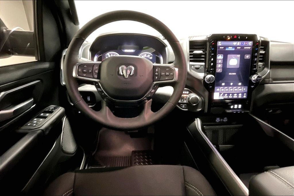 New Price! 2025 Ram 1500 Big Horn/Lone Star Big Horn/Lone Star Granite Crystal Metallic Clearcoat 4D Quad Cab 4WD 3.6L V6 24V VVT 8-Speed Automatic 1 Owner, New Feature, Apple CarPlay / Android Auto, Backup camera, Blind Spot Monitoring, Bluetooth®, Remote Start, 1500 Big Horn/Lone Star, 4D Quad Cab, 3.6L V6 24V VVT, 8-Speed Automatic, 4WD, Granite Crystal Metallic Clearcoat, Black Cloth, 115V Auxiliary Power Outlet, 12 Touchscreen Display, 3 Rear Seat Head Restraints, 4 Way Front Headrests, 4-Wheel Disc Brakes, 400W Inverter, 4G LTE Wi-Fi Hot Spot, 6 Speakers, 9 Amplified Speakers w/Subwoofer, ABS brakes, Accent Color Door Handles, Accent Color Premium Power Mirrors, Accent Color Tailgate Handle, Air Conditioning, Air Conditioning ATC w/Dual Zone Control, Alloy wheels, AM/FM radio, Anti-Spin Differential Rear Axle, Apple CarPlay, Apple CarPlay/Android Auto, Auto High-beam Headlights, Auto Power-Folding Mirrors, Auto-Dimming Exterior Driver Mirror, Auto-Dimming Rear-View Mirror, Big Horn Level 2 Equipment Group, Black Exterior Mirrors, Black Exterior Truck Badging, Black Headlamp Bezels, Black Interior Accents, Black Painted Exterior Mirrors Caps, Black Premium Power Mirrors, Black RAM Grille Badge, Black Tail Lamp Bezels, Body Color Front Bumper, Body Color Rear Bumper w/Step Pads, Brake assist, Bucket Seats, Bumpers: chrome, Chrome RAM Grille Badge, Cloth Bench Seat, Cluster 12 TFT Color Display, Cluster 7 TFT Color Display, Compass, Configurable Drive Mode, Connected Travel & Traffic Services, Connectivity - US/Canada, Convex Wide-Angle Exterior Mirror Insert, Delay-off headlights, Deluxe Cloth Bucket Seats, Driver door bin, Dual Exhaust w/Black Tips, Dual front impact airbags, Dual front side impact airbags, Electronic Stability Control, Exterior Mirrors Courtesy Lamps, Exterior Mirrors w/Heating Element, Exterior Mirrors w/Supplemental Signals, Front anti-roll bar, Front Center Armrest w/Storage, Front fog lights, Front reading lights, Front Seat Back Map Pockets, Front wheel independent suspension, Full Length Floor Console, Fully automatic headlights, Glove Box Lamp, Google Android Auto, GPS Antenna Input, GPS Navigation, Grille Black Surround Black Mesh, HD Radio, Heated door mirrors, Heated Front Seats, Heated Steering Wheel, Illuminated entry, Integrated Voice Command w/Bluetooth®, Leather Wrapped Steering Wheel, LED Dome Lamp w/On/Off Switch, LED Footwell Lighting, Low tire pressure warning, Manual Adjust 4-Way Front Passenger Seat, Manual Folding Exterior Mirrors, MOPAR Front & Rear Rubber Floor Mats, Night Edition, Occupant sensing airbag, Outside temperature display, Overhead airbag, Overhead console, Overhead LED Lamps, Panic alarm, ParkView Rear Back-Up Camera, Passenger door bin, Passenger vanity mirror, Power 2-Way Driver Lumbar Adjust, Power Adjust 8-Way Driver Seat, Power Adjustable Pedals, Power door mirrors, Power steering, Power windows, Premium Overhead Console, Quick Order Package 23Z Big Horn, Radio data system, Radio: Uconnect 5 Nav w/12 Display, Radio: Uconnect 5 w/8.4 Display, Rear 60/40 Folding Seat, Rear anti-roll bar, Rear Power Sliding Window, Rear seat center armrest, Rear step bumper, Rear Window Defroster, Remote keyless entry, Remote Tailgate Release, Security Alarm, SiriusXM w/360L, Speed control, Split folding rear seat, Steering Wheel Mounted Audio Controls, Sun Visors w/Illuminated Vanity Mirrors, Supplier Part Tracking (J-1), Tachometer, Telescoping steering wheel, Tilt steering wheel, Traction control, Trip computer, Universal Garage Door Opener, USB Host Flip, Variably intermittent wipers, Voltmeter, Wheels: 20 x 9 Aluminum Painted Clad.